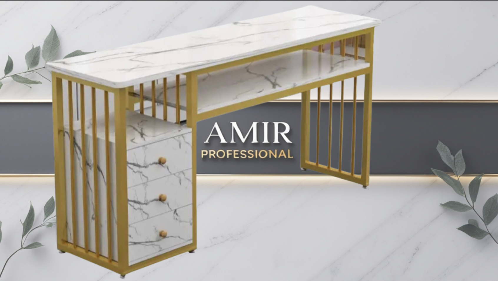 Descubre la elegancia y funcionalidad de nuestra Mesa de Lujo para Salones de Uñas, diseñada para elevar cualquier espacio de trabajo. Con un sofisticado acabado en blanco efecto mármol y un marco dorado que aporta un toque de distinción, esta mesa es el complemento perfecto para estéticas y salones de uñas. Equipado con tres amplios cajones, ofrece un almacenamiento práctico y accesible para tus herramientas y productos. Además, cuenta con un ingenioso espacio entre los cajones y la superficie, ideal para mantener tus utensilios al alcance y organizados. Diseñada para uso profesional, esta mesa no solo es un mueble, sino una declaración de estilo que mejorará la experiencia de tus clientes y optimizará tu trabajo diario.